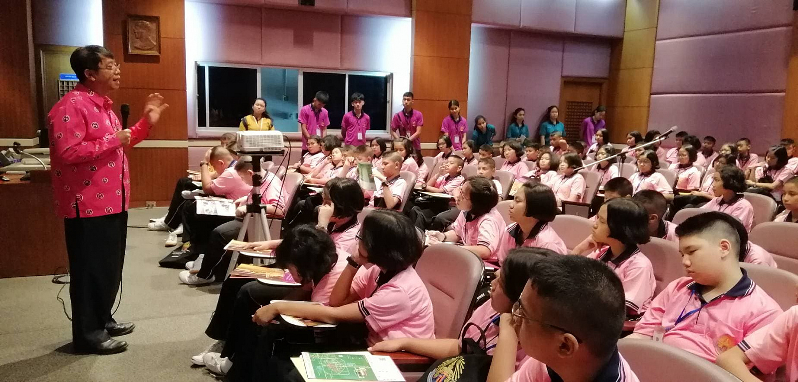 ผศ.ดร.สุวิทย์ วุฒิสุทธิเมธาวี รองอธิการบดีฝ่ายบริหาร มหาวิทยาลัยวลัยลักษณ์ ให้การต้อนรับอาจารย์และนักเรียน ชั้นมัธยมศึกษาปีที่ 1 โรงเรียนวิทยาศาสตร์จุฬาภรณราชวิทยาลัย นครศรีธรรมราช ศึกษาเรียนรู้ ณ มหาวิทยาลัยวลัยลักษณ์ เมื่อวันศุกร์ที่ 26 เมษายน 2562 เวลา 08.30-16.30 น. โดยให้การต้อนรับ ณ ห้องตุมปัง ชั้น 3 อาคารบริหาร มหาวิทยาลัยวลัยลักษณ์ จังหวัดนครศรีธรรมราช