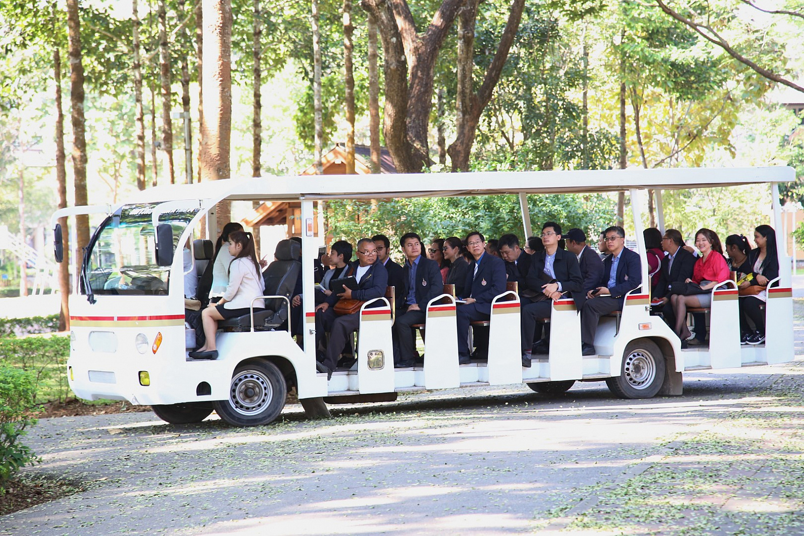 คณะศึกษาดูงานได้รับเกียรติจาก อาจารย์ ดร.พรรณรวี พรหมนารท รองอธิการบดีมหาวิทยาลัยแม่ฟ้าหลวง ในการนำชมบ้านพักอาจารย์/บุคลากร หอพักนักศึกษา เยี่ยมชมการจัดการเรียนการสอนของศูนย์ภาษาและวัฒนธรรมจีนสิรินธร และตามธรรมเนียมปฏิบัติของผู้มาเยือนที่จะได้ถวายราชสักการะพระราชานุสาวรีย์สมเด็จพระศรีนครินทราบรมราชชนนี อันเป็นศูนย์รวมจิตใจของชาวแม่ฟ้าหลวง จากนั้นได้เยี่ยมชมและศึกษาพันธุ์พืชสมุนไพร ณ สวนพฤกษศาสตร์ นมัสการสิ่งศักดิ์สิทธิ์เพื่อความเป็นสิริมงคล ณ วิหารพระเจ้าล้านทองเฉลิมพระเกียรติ และสิ้นสุดการเยี่ยมชมสำหรับวันแรกของการศึกษาดูงาน ณ อาคาร M-square ซึ่งเป็นจุดศูนย์กลางสำหรับการจัดกิจกรรมต่างๆ ของนักศึกษา