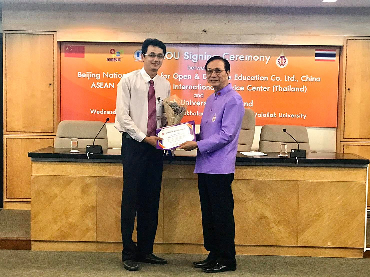 เมื่อวันที่ 9 ตุลาคม 2562 ที่ผ่านมา ในพิธีก่อนวาระการประชุมบริหาร มหาวิทยาลัยวลัยลักษณ์ ครั้งที่ 10/2562 ศาสตราจารย์ ดร.สมบัติ ธำรงธัญวงศ์ อธิการบดีมหาวิทยาลัยวลัยลักษณ์ มอบเกียรติบัตรพร้อมช่อดอกไม้แสดงความยินดีให้แก่อาจารย์ผู้ได้รับรางวัลและมีผลงานที่สร้างชื่อเสียงให้กับมหาวิทยาลัย ณ ห้องประชุมโมคลาน อาคารบริหาร ได้แก่