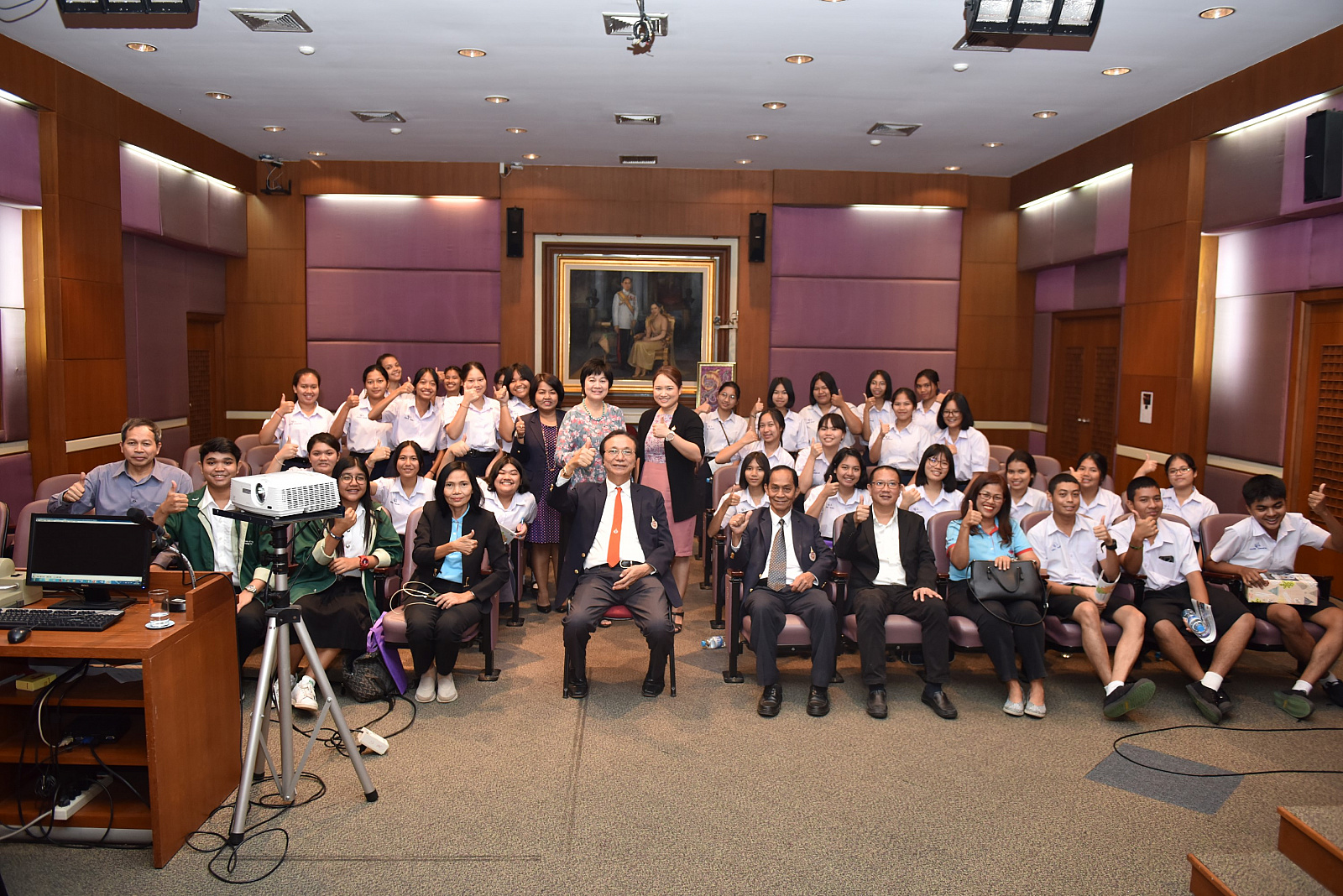 ศาสตราจารย์ ดร.สมบัติ ธำรงธัญวงศ์ อธิการบดีมหาวิทยาลัยวลัยลักษณ์ พร้อมคณบดี รองคณบดี และคณาจารย์สำนักวิชาต่าง ๆ พร้อมรุ่นพี่ศิษย์เก่าโรงเรียนหาดใหญ่วิทยาลัย ร่วมต้อนรับและบรรยายสรุปแก่อาจารย์และนักเรียนชั้นมัธยมศึกษาปีที่ 4 – 5 โรงเรียนหาดใหญ่วิทยาลัย จำนวนประมาณ 30 คน ในโอกาสเยี่ยมชม และศึกษาเรียนรู้สำนักวิชาที่ชอบ อาชีพที่ใช่ พร้อมเยี่ยมชมวิทยาลัยนานาชาติ Smart classroom ศาลจำลอง และสวนวลัยลักษณ์ เมื่อวันอังคารที่ 15 มกราคม 2562 เวลา 10.00-16.00 น. โดยให้การต้อนรับ ณ ห้องตุมปัง ชั้น 3 อาคารบริหาร มหาวิทยาลัยวลัยลักษณ์ จังหวัดนครศรีธรรมราช