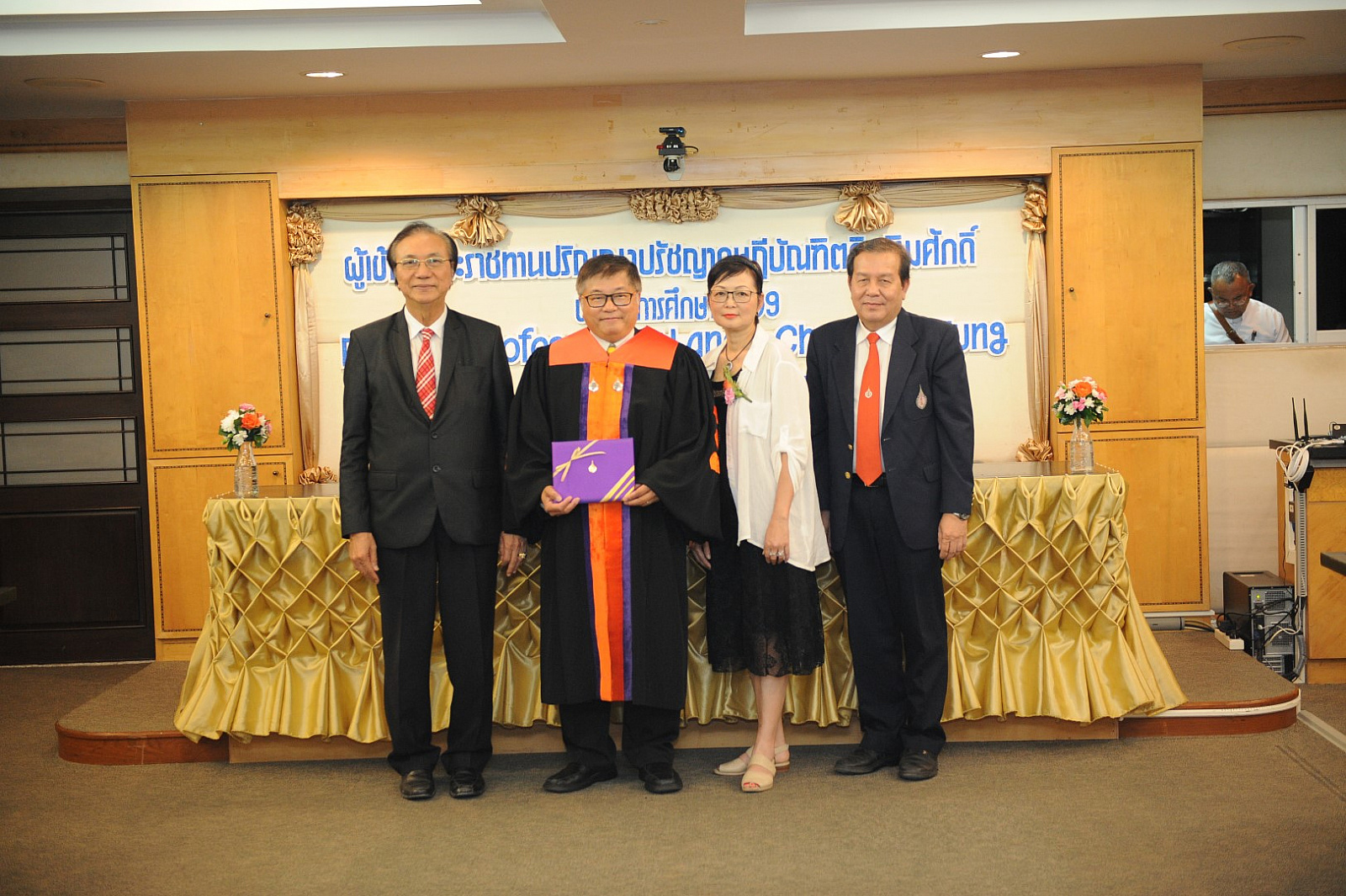 ศาสตราจารย์ ดร.สมบัติ ธำรงธัญวงศ์ อธิการบดี ม.วลัยลักษณ์ เป็นประธานมอบปริญญาปรัชญาดุษฎีบัณฑิตกิตติมศักดิ์ สาขาเทคโนโลยีสารสนเทศ ให้แก่ Emeritus Professor Dr.Lance Chun Che Fung ผู้ซึ่งได้รับการอนุมัติจากสภามหาวิทยาลัยวลัยลักษณ์ให้ได้รับปริญญาฯสาขาดังกล่าว แต่เนื่องจาก Emeritus Professor Dr.Lance Chun Che Fung ติดภารกิจอยู่ต่างประเทศ จึงไม่สามารถเดินทางเข้ารับพระราชทานปริญญาปรัชญาดุษฎีกิตติมศักดิ์ในพิธีพระราชทานปริญญาบัตรผู้สำเร็จการศึกษาจากมหาวิทยาลัยวลัยลักษณ์ ประจำปีการศึกษา 2559 เมื่อวันที่ 5 ตุลาคม 2560 ที่ผ่านมาได้ จึงได้มีพิธีมอบปริญญาปรัชญาดุษฎีบัณฑิตกิตติมศักดิ์ให้แก่ท่าน ก่อนการประชุมบริหาร เมื่อวันที่ 13 ธันวาคม 2560 ที่ผ่านมา ณ ห้องประชุมโมคลาน อาคารบริหาร