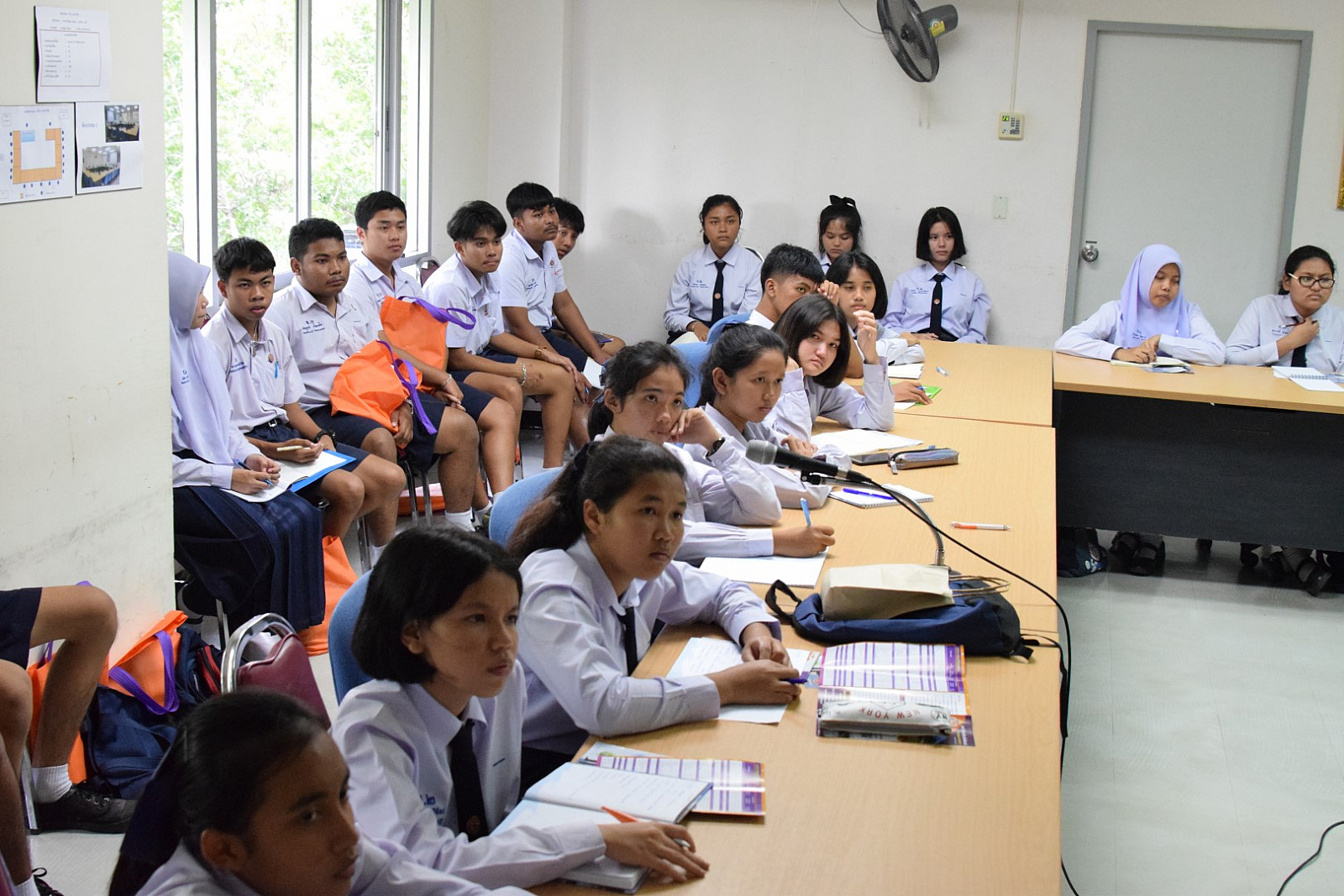 เมื่อวันพุธที่ 24 มกราคม 2561 ระหว่างเวลา 10.00 – 16.00 น.ณ ห้องตุมปัง อาคารบริหาร ผศ.ดร.สุวิทย์ วุฒิสุทธิเมธาวี รองอธิการบดีฝ่ายบริหาร มหาวิทยาลัยวลัยลักษณ์ ให้การต้อนรับอาจารย์ และนักเรียนชั้นมัธยมศึกษาปีที่ 4 โรงเรียนเทศบาล 2 (คลองจิหลาด) จ.กระบี่ จำนวน 69 คน ซึ่งเป็นนักเรียนชั้นมัธยมศึกษาปีที่ 4 รุ่นแรกของโรงเรียน ศึกษาเรียนรู้การจัดการเรียนการสอน หลักสูตรในสำนักวิชาต่าง ๆ โดยมีคณบดี คณาจารย์และเจ้าหน้าที่ฯ ศูนย์บริการการศึกษา และเจ้าหน้าที่ฯส่วนสื่อสารองค์กร ร่วมพูดคุยพร้อมนำชมมหาวิทยาลัยวลัยลักษณ์