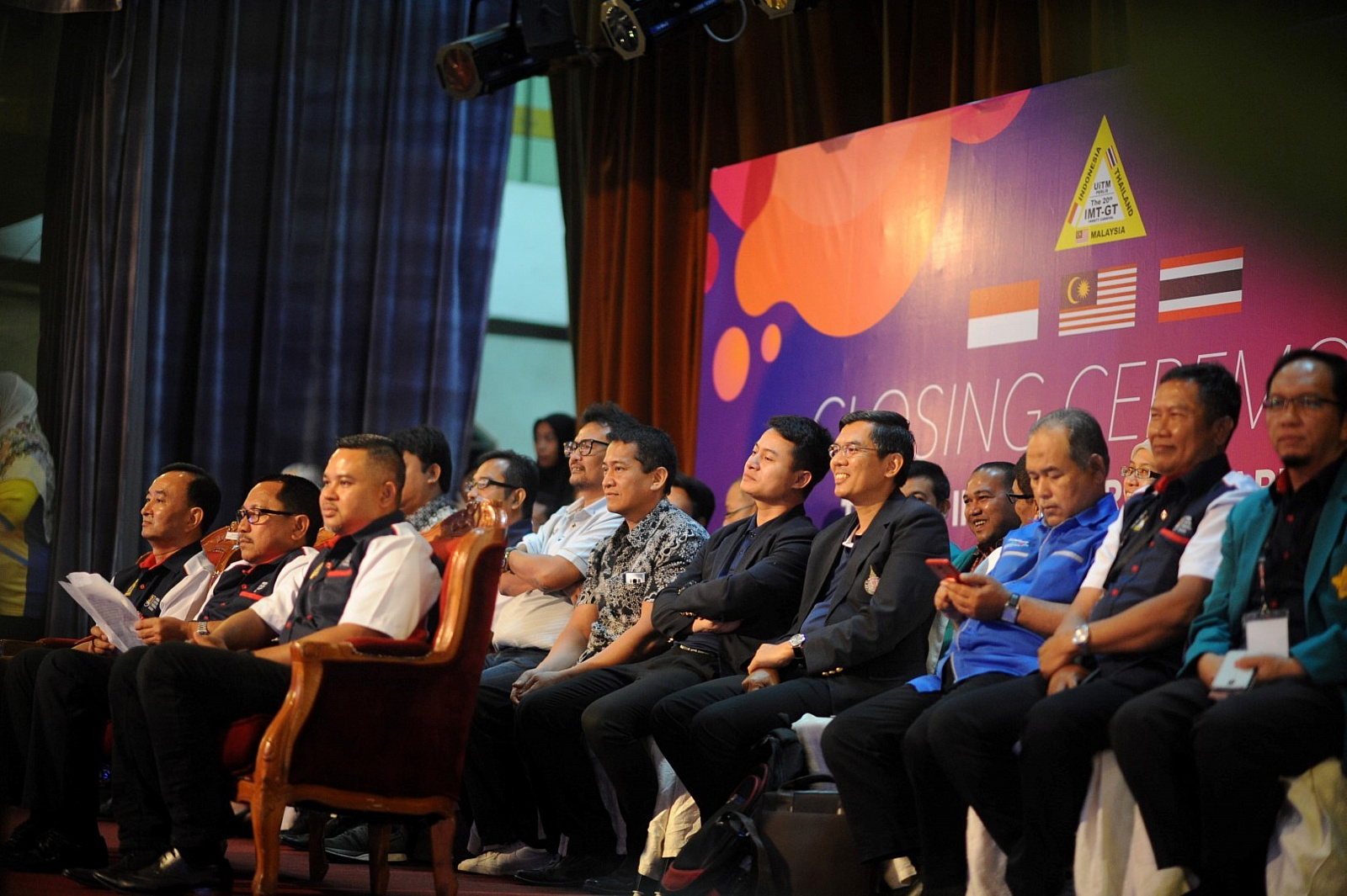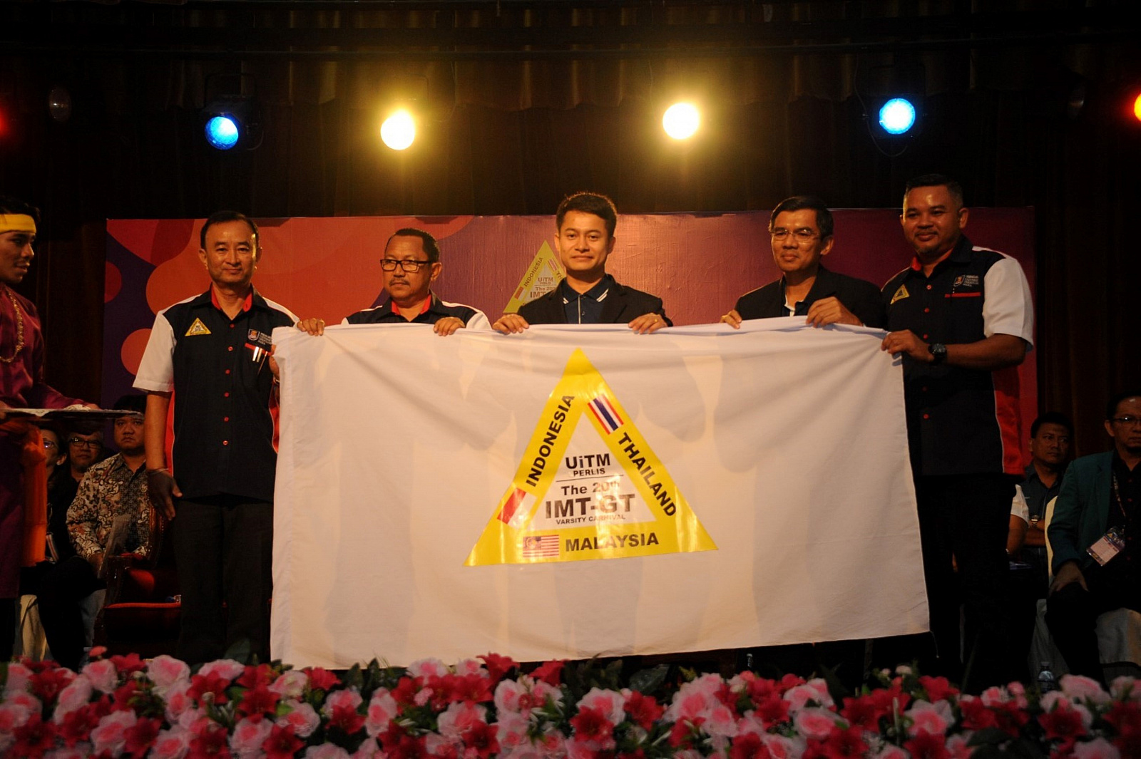 รองศาสตราจารย์ ดร.ศราวุธ ปาลิโภชน์ รองอธิการบดีฝ่ายกิจการนักศึกษา มหาวิทยาลัยวลัยลักษณ์ ในฐานะผู้แทนอธิการบดีมหาวิทยาลัยวลัยลักษณ์ พร้อมด้วยนายปิยวัชน์ คงอินทร์ หัวหน้าส่วนกิจการนักศึกษา รับมอบธงการเป็นเจ้าภาพจัดงาน “IMT-GT Varsity Carnival” ครั้งที่ 21 จาก EMERITUS PROFESSOR DATO’ DR. HASSAN SAID Vice-Chancellor Universiti Teknologi MARA (UiTM) และ ผู้ช่วยศาสตราจารย์สุพจน์ โกวิทยา The Vice President of IMT-GT Varsity Council ในพิธีปิดงาน IMT-GT Varsity Carnival ครั้งที่ 20 ที่ผ่านมา ณ Universiti Teknologi MARA Perlis ประเทศมาเลเซีย