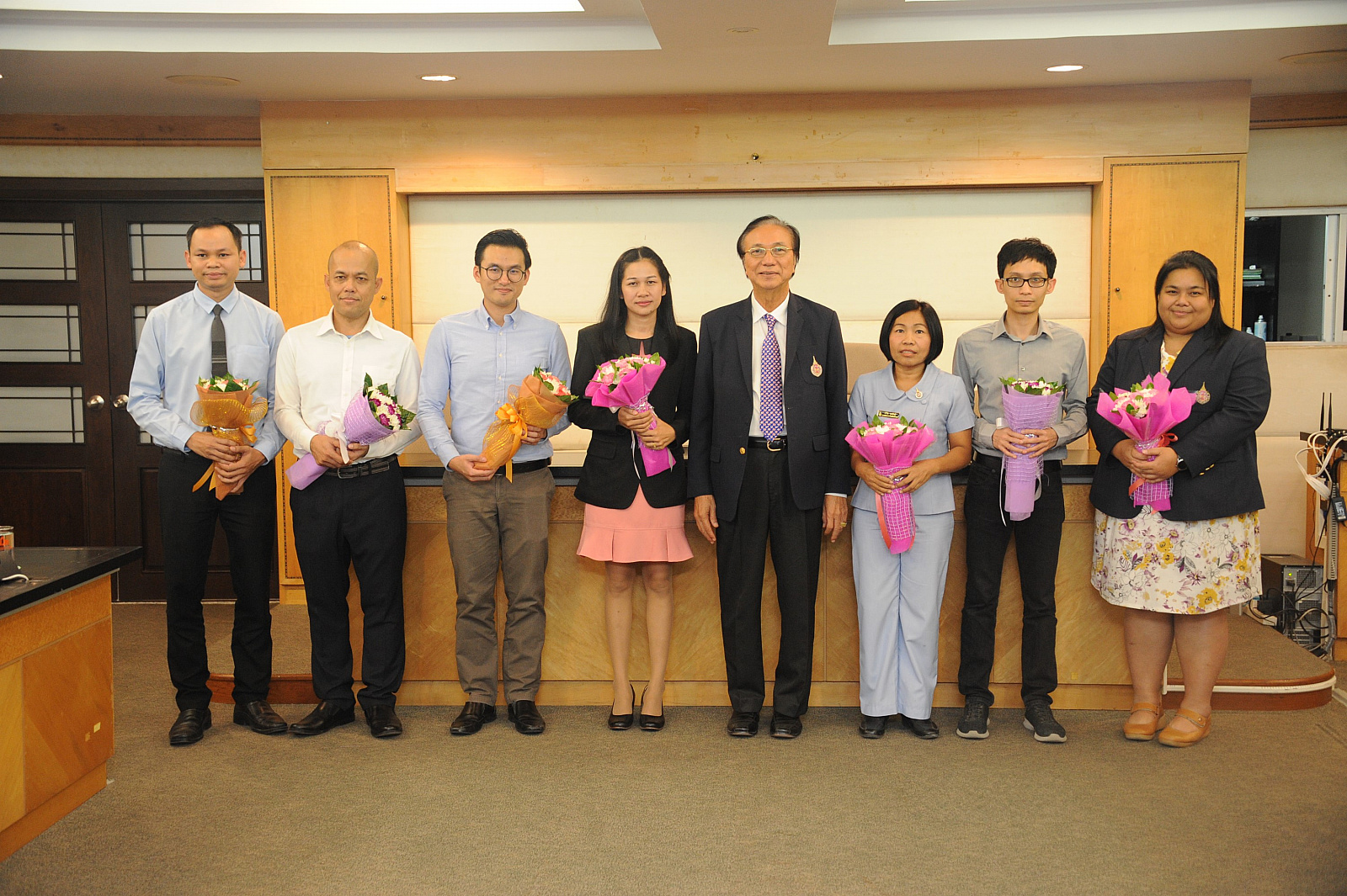 ศาสตราจารย์ ดร.สมบัติ ธำรงธัญวงศ์ อธิการบดี มหาวิทยาลัยวลัยลักษณ์ มอบช่อดอกไม้แสดงความยินดีให้แก่อาจารย์ ผู้ได้รับอนุมัติให้ดำรงตำแหน่งทางวิชาการ จำนวน 11 คน ในการประชุมสภาวิชาการครั้งที่ 7/2561 วันที่ 25 กรกฎาคม 2561 และ ครั้งที่ 8/2561 วันที่ 29 สิงหาคม 2561 ที่ผ่านมา โดยมีผู้บริหาร คณาจารย์ของมหาวิทยาลัยร่วมแสดงความยินดี ณ ห้องประชุมโมคลาน อาคารบริหาร