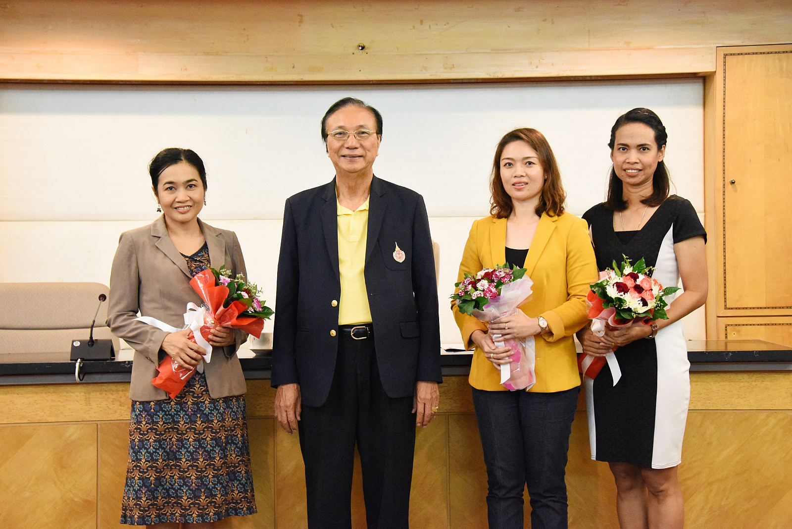 นอกจากนี้ ในพิธีก่อนวาระการประชุมสภาวิชาการครั้งที่ 9/2561 เมื่อวันที่ 26 กันยายน 2561 ที่ผ่านมา ศาสตราจารย์ ดร.สมบัติ ธำรงธัญวงศ์ อธิการบดีมหาวิทยาลัยวลัยลักษณ์ได้มอบช่อดอกไม้แสดงความยินดีให้แก่อาจารย์ ผู้ได้รับอนุมัติให้ดำรงตำแหน่งทางวิชาการ จำนวน 3 คน ดังนี้
