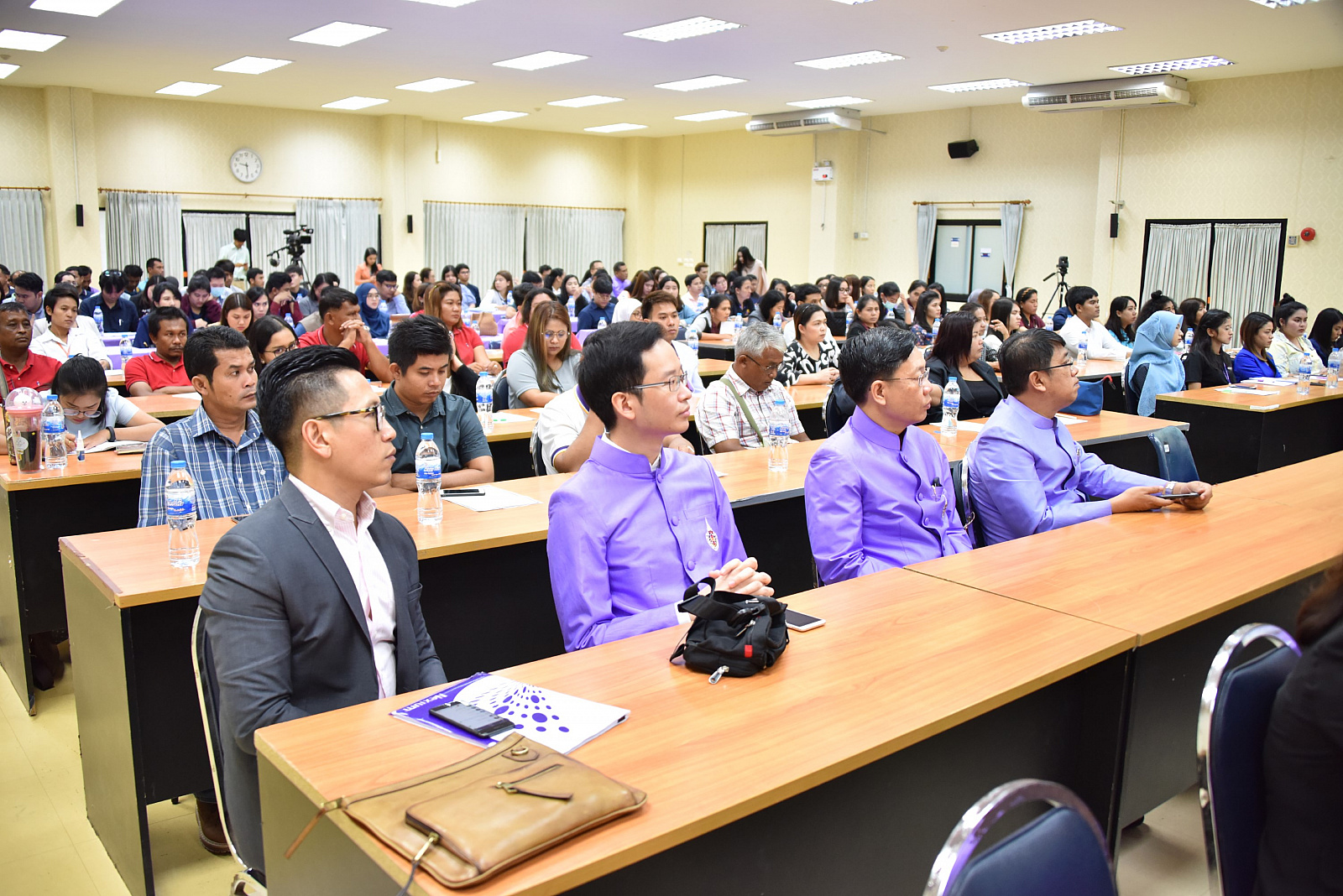 โอกาสนี้ ได้รับเกียรติจาก ศาสตราจารย์ ดร.วิจิตร ศรีสอ้าน นายกสภามหาวิทยาลัย ร่วมปาฐกถาพิเศษ ในหัวข้อ “แนวคิดและทิศทางการพัฒนามหาวิทยาลัยวลัยลักษณ์” ศาสตราจารย์ ดร.สมบัติ ธำรงธัญวงศ์ อธิการบดี บรรยายพิเศษ ในหัวข้อ “กรอบแนวคิด นโยบาย เป้าหมายวลัยลักษณ์/การบริหารแบบมุ่งผลสัมฤทธิ์” ศาสตราจารย์ ดร. ธวัชชัย ศุภดิษฐ์ รองอธิการบดีฝ่ายวางแผนและยุทธศาสตร์การพัฒนา บรรยายพิเศษในหัวข้อ “แผนยุทธศาสตร์การพัฒนามหาวิทยาลัย” ผู้ช่วยศาสตราจารย์ ดร. สุวิทย์ วุฒิสุทธิเมธาวี รองอธิการบดีฝ่ายบริหาร บรรยายพิเศษในหัวข้อ “เสริมสร้างความภาคภูมิใจ เรียนรู้แนวคิด ค่านิยม วิถีวลัยลักษณ์” และ พ.ต.อ.ประสิทธิ์ เผ่าชู ผู้ช่วยอธิการบดีฝ่ายกฎหมาย บรรยายพิเศษ เรื่อง “ข้อปฏิบัติทางวินัยและการสอบสวน