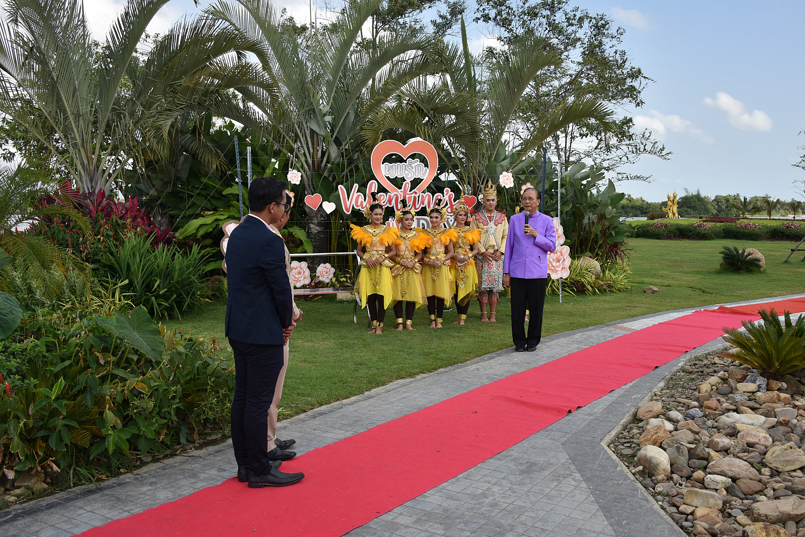 ศาสตราจารย์ ดร.สมบัติ ธำรงธัญวงศ์ กล่าวว่า กิจกรรมในวันนี้ถือเป็นโอกาสอันดีที่จะอวยพรเนื่องในวันแห่งความรักให้กับคู่รักและประชาชนชาวท่าศาลาทุกคน ซึ่งทางอำเภอท่าศาลา นำโดยนายอำเภอท่าศาลา ได้เห็นถึงความสวยงามของทัศนียภาพและบรรยากาศที่ร่มรื่นของสวนวลัยลักษณ์ จึงให้คู่รักได้มาจดทะเบียนสมรสและมีความสุขท่ามกลางบรรยากาศที่สวยงามบนเนื้อที่กว่า 255 ไร่ หวังว่ากิจกรรมนี้จะได้เป็นกิจกรรมที่ทำสืบเนื่องต่อไปจนเป็นเหตุการณ์สำคัญของอำเภอท่าศาลา เช่นเดียวกับการจดทะเบียนสมรสใต้น้ำที่จังหวัดตรัง หรือการจดทะเบียนสมรส ณ เขตบางรัก กรุงเทพฯ ในนามของ ม.วลัยลักษณ์ ขอขอบคุณนายอำเภอท่าศาลาและแขกผู้มีเกียรติทุกท่านที่กรุณามาใช้สถานที่ของ ม.วลัยลักษณ์เป็นสถานที่สำคัญ โดยเฉพาะคู่บ่าวสาวซึ่งถือเป็นบุคคลสำคัญที่มาจดทะเบียนเพื่อแสดงถึงความเป็นคู่สมรสที่จะอยู่ร่วมกันชั่วนิรันดร์ ขอให้คู่สมรสทุกท่านมีแต่ความสุขความเจริญคิดสิ่งใดสมปรารถนาและมีชีวิตสมรสที่มีความสุขตลอดไป