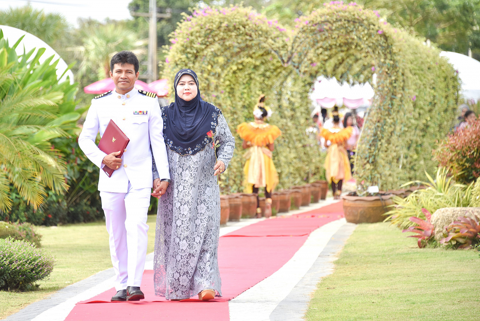 โอกาสนี้ ศาสตราจารย์ ดร.สมบัติ ธำรงธัญวงศ์ อธิการบดีมหาวิทยาลัยวลัยลักษณ์ และนายสุพงษวินัย ชูยก นายอำเภอท่าศาลาร่วมเป็นประธานการจดทะเบียนสมรสในครั้งนี้ พร้อมแขกผู้มีเกียรติ หัวหน้าส่วนราชการ และประชาชนร่วมเป็นสักขีพยานเป็นจำนวนมาก