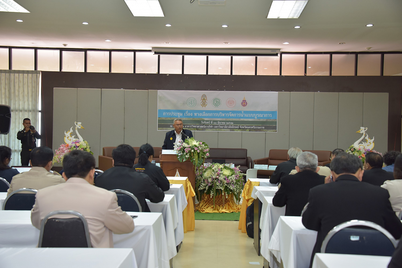 โอกาสนี้ ผู้ช่วยศาสตราจารย์ ดร.สุวิทย์ วุฒิสุทธิเมธาวี รองอธิการบดีฝ่ายบริหาร กล่าวต้อนรับ พร้อมด้วยนายถาวรวัฒน์ คงแก้ว รองผู้ว่าราชการจังหวัดนครศรีธรรมราช ร่วมให้การต้อนรับ โดยมีผู้แทนจากจากกระทรวงเกษตรฯ กระทรวงมหาดไทย กระทรวงกลาโหม องค์กรปกครองส่วนท้องถิ่น ภาคการศึกษา และตัวแทนเกษตรกร เข้าร่วมการประชุมครั้งนี้