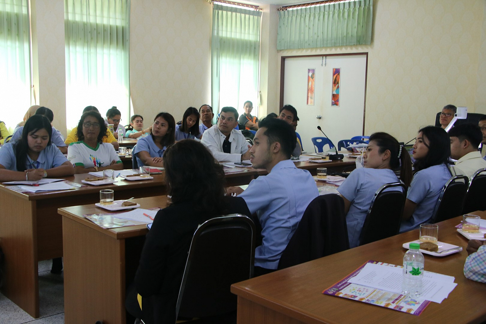การประชุมคืนข้อมูลแก่พื้นที่ในวันที่ 13 พฤศจิกายน 2562 เวลา 13.00-16.00 น. ณ สำนักงานสาธารณสุขอำเภอกาญจนดิษฐ์ มีผู้เกี่ยวข้องเข้าร่วม ประกอบด้วย สาธารณสุขอำเภอ นักวิชาการสาธารณสุข ผู้อำนวยการโรงเรียน คุณครูอนามัย อาสาสมัครสาธารณสุขประจำหมู่บ้าน นักศึกษา และอาจารย์จากสำนักวิชาสาธารณสุขศาสตร์ ศูนย์ความเป็นเลิศด้านวิจัยและบริการวิชาการโรคไข้เลือดออก จำนวน 60 คน รวมกันระดมสมองในการนำผลการวิจัยจากรายวิชาเรียนไปประยุกต์ใช้อย่างเหมาะสมกับบริบทพื้นที่