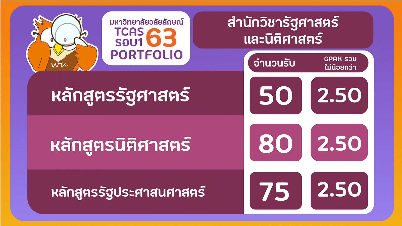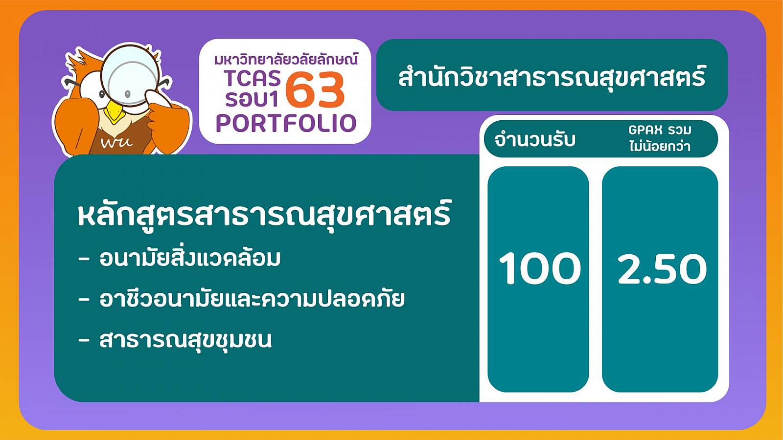มหาวิทยาลัยวลัยลักษณ์ รับสมัครนักศึกษา TCAS63 รอบ 1 Portfolio ระหว่างวันที่ 2-16 ธันวาคม 2562