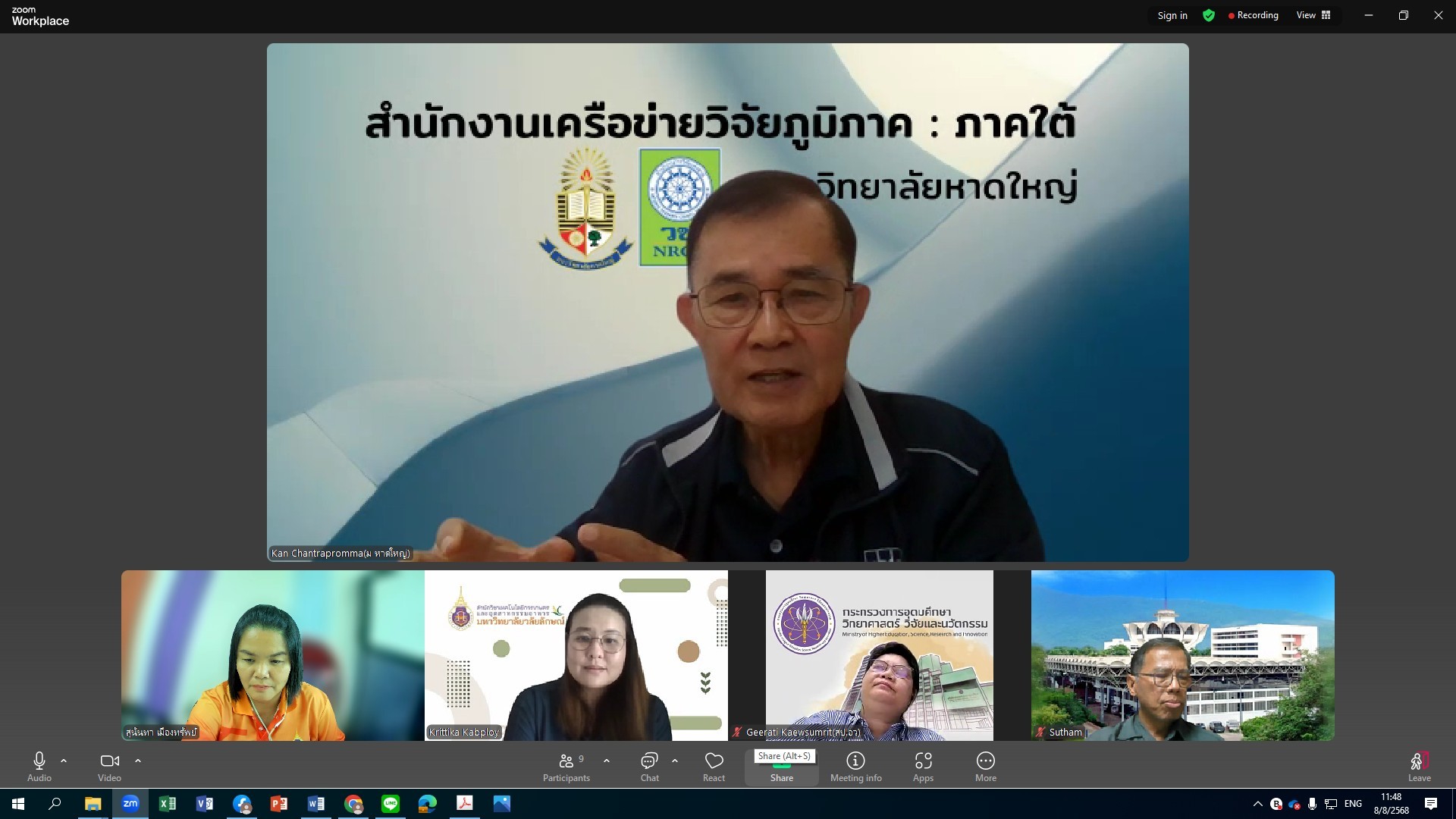 - ที่ปรึกษาอธิการบดีฝ่ายวิจัย มหาวิทยาลัยหาดใหญ่ (รองศาสตราจารย์ ดร. ก้าน จันทร์พรหมมา)